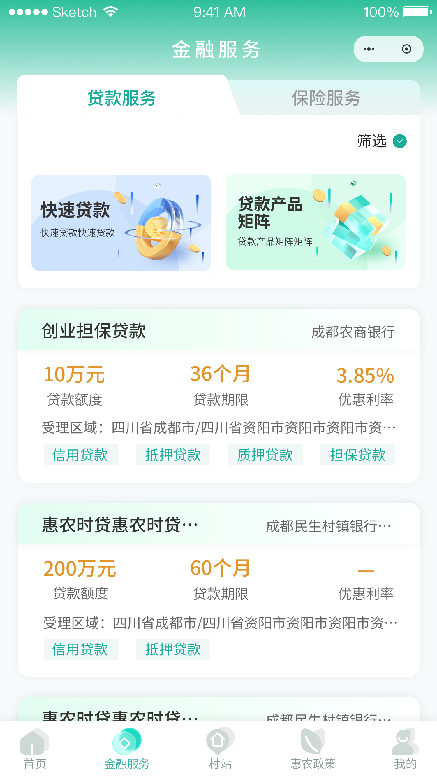 3、核心功能点包括快速贷款、贷款产品矩阵和村站地图,这三个功能是这次迭代的重点和亮点;