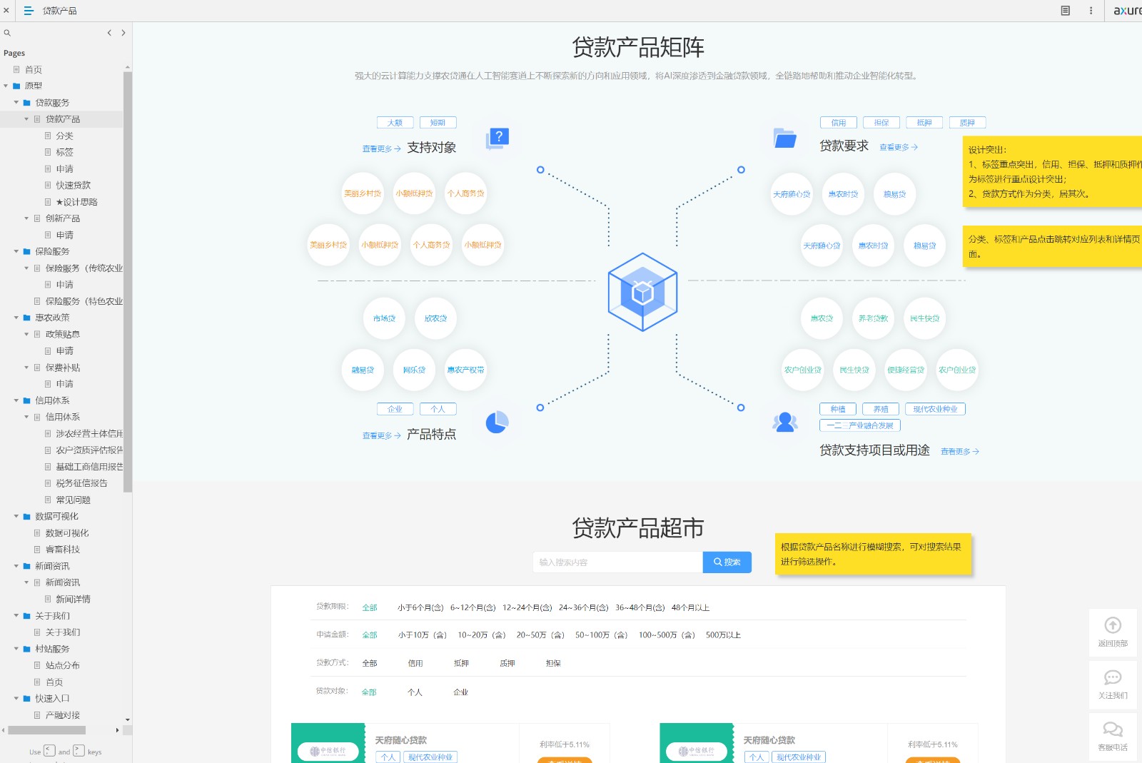 3、贷款服务包括贷款产品和创新产品,贷款产品此次迭代上线智能推荐和产品矩阵模块,作为亮点功能;