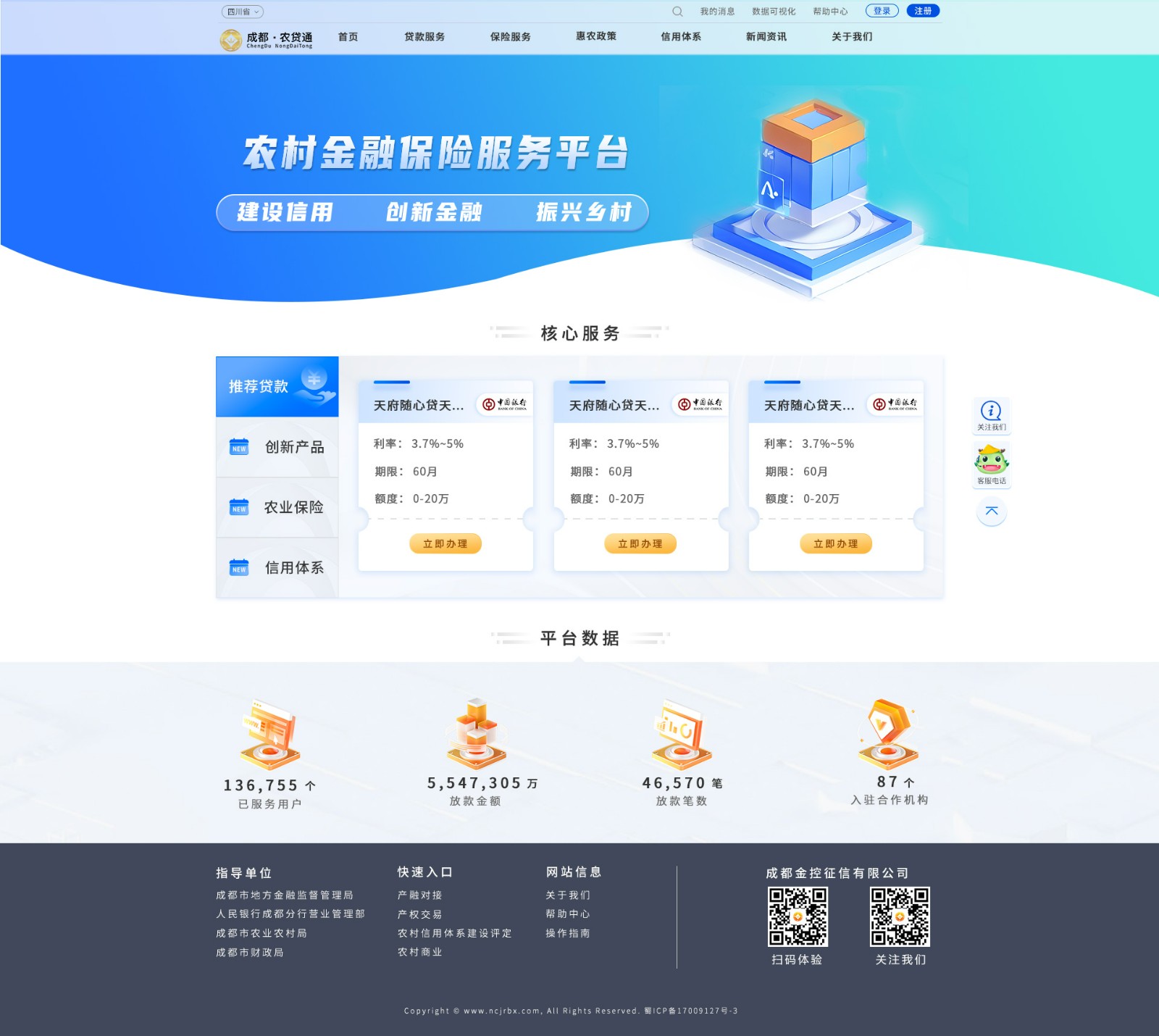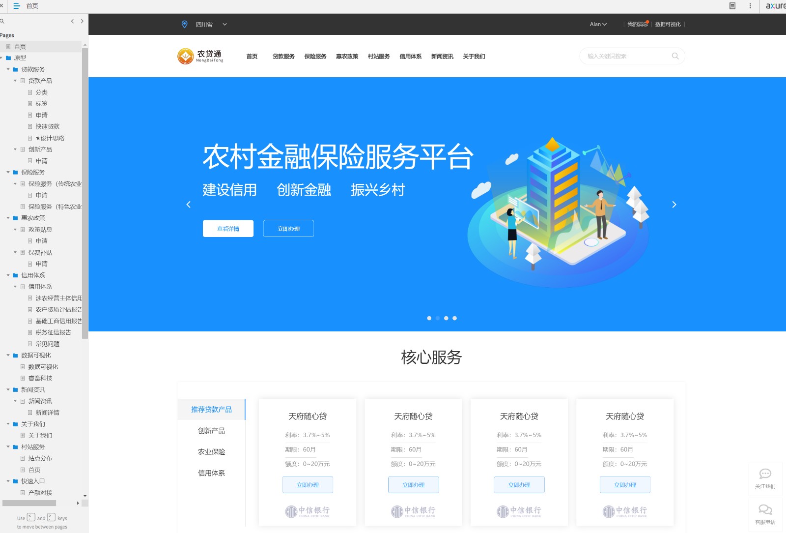 1、包括首页、贷款服务、保险服务、惠农政策、村站服务和信用体系业务模块;