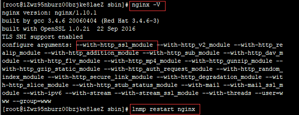 lnmp restart nginx //重启nginx 不同的系统请选择不同的重启方式 netstat -lntup|grep 443 //查看443端口状态